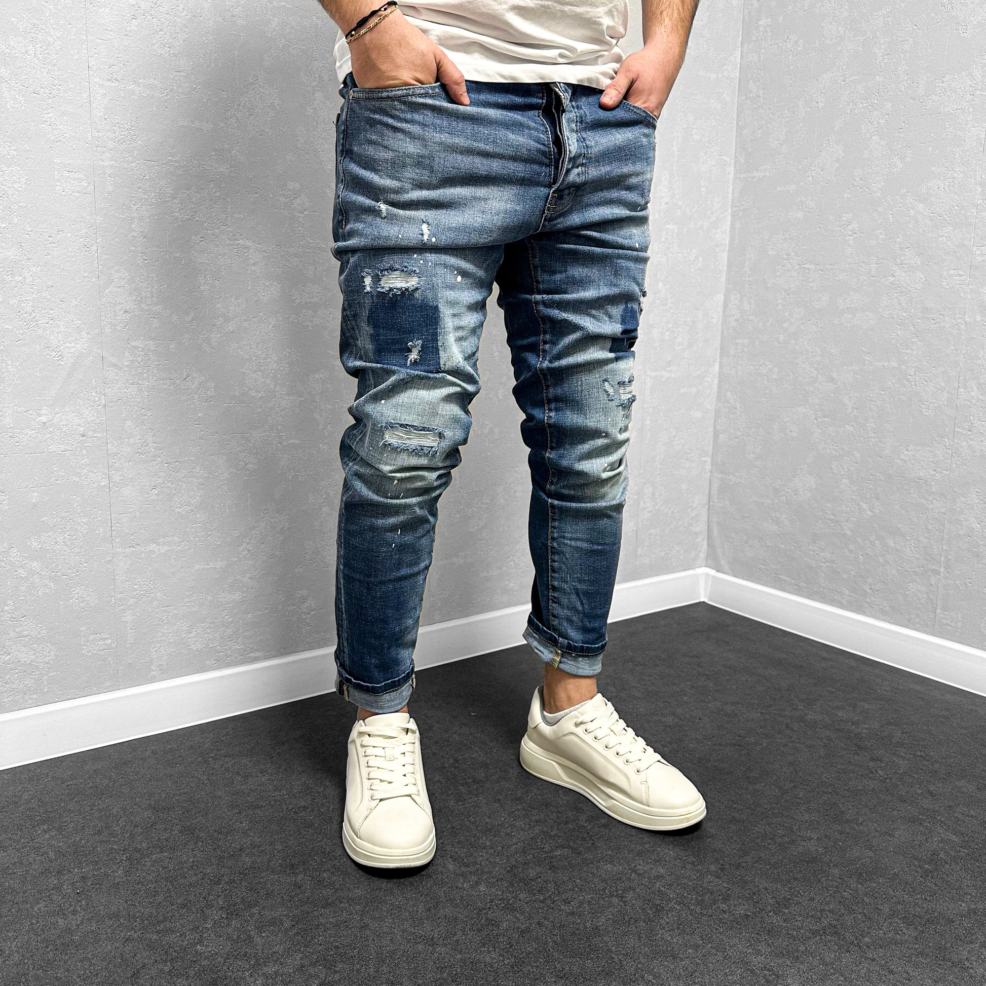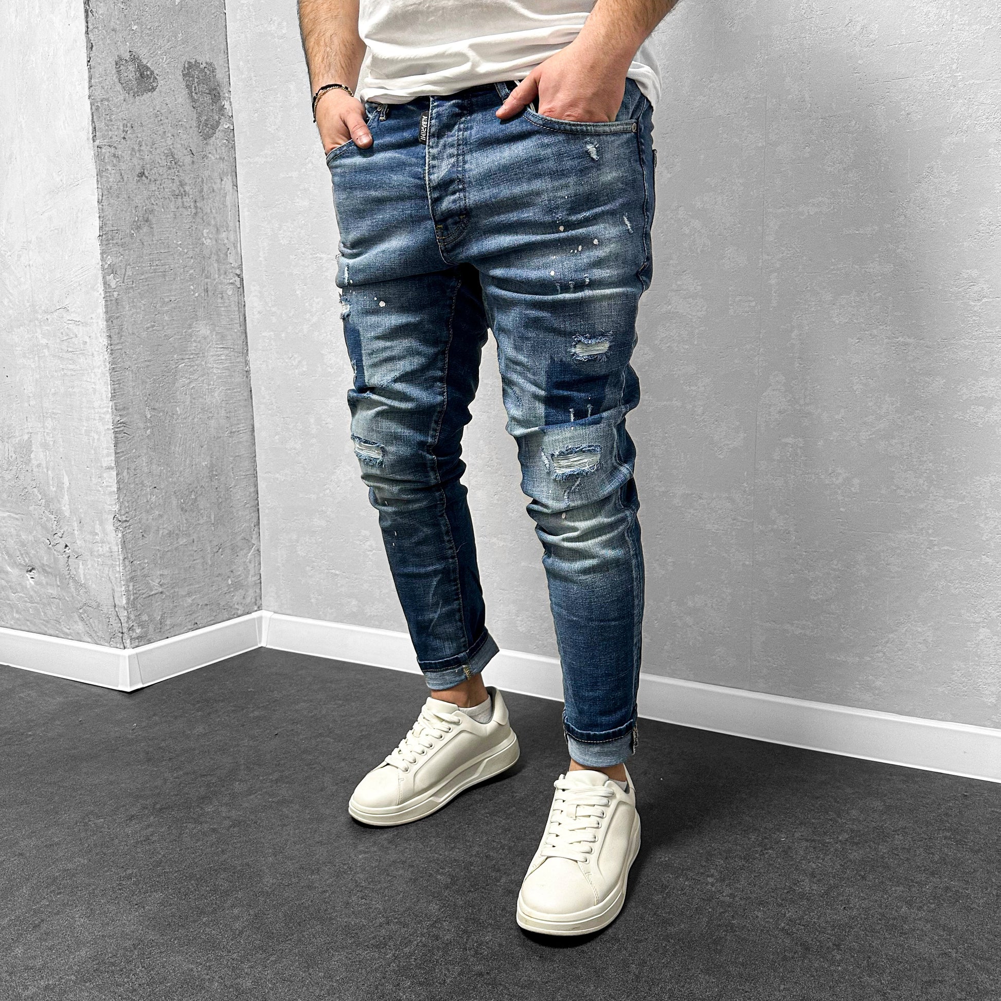 Мъжки накъсани дънки с пръски "Mordred"