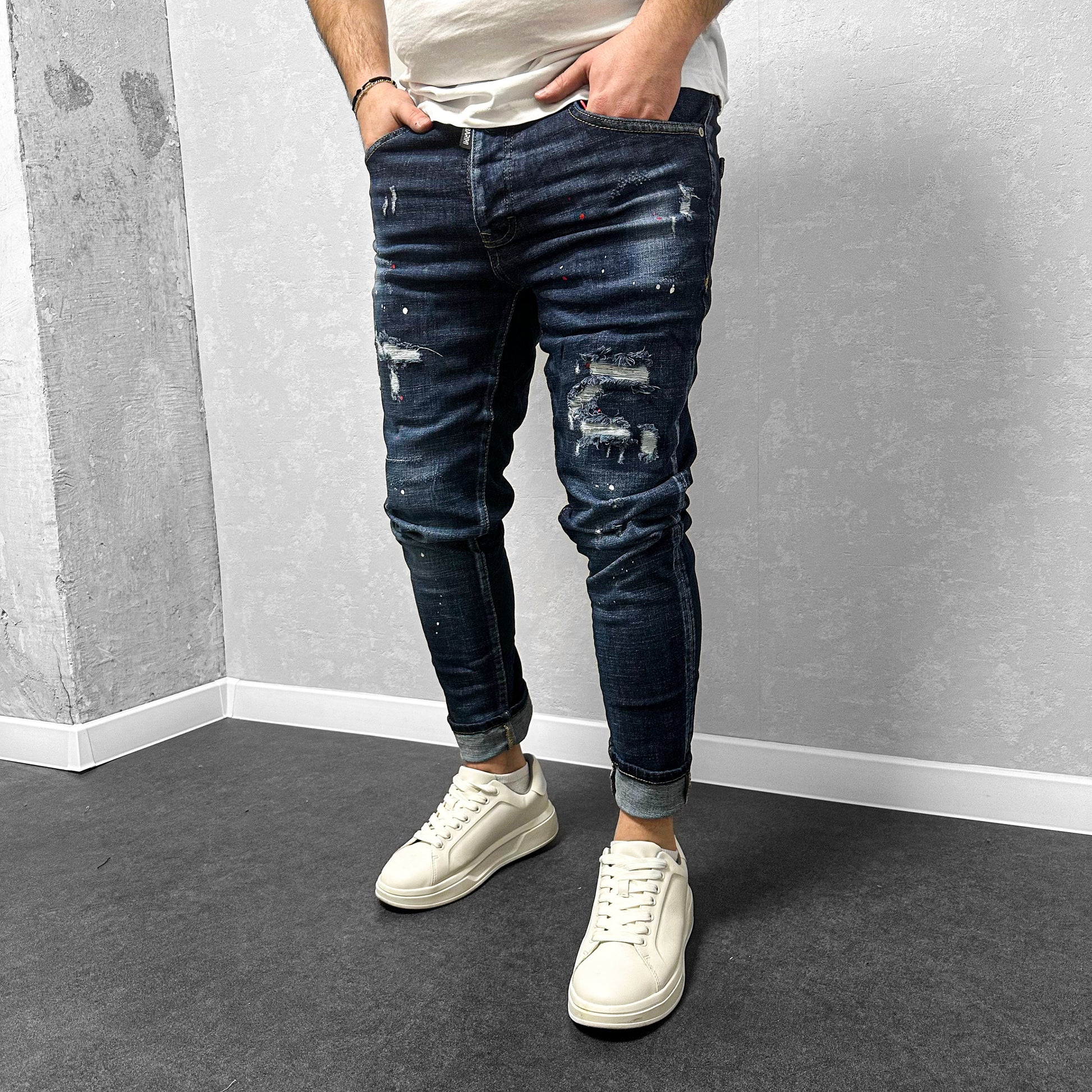 Мъжки накъсани дънки с пръски "Mordred"
