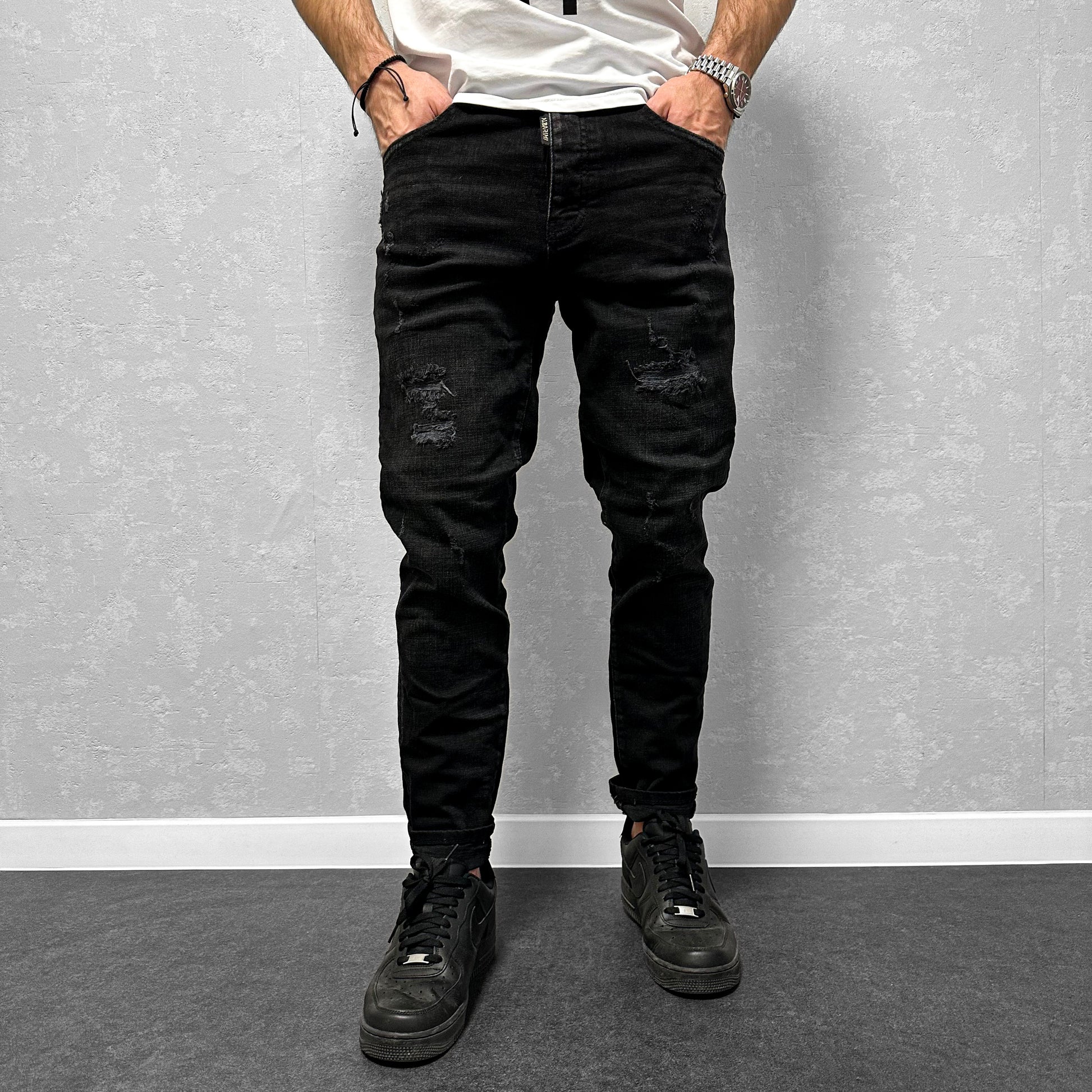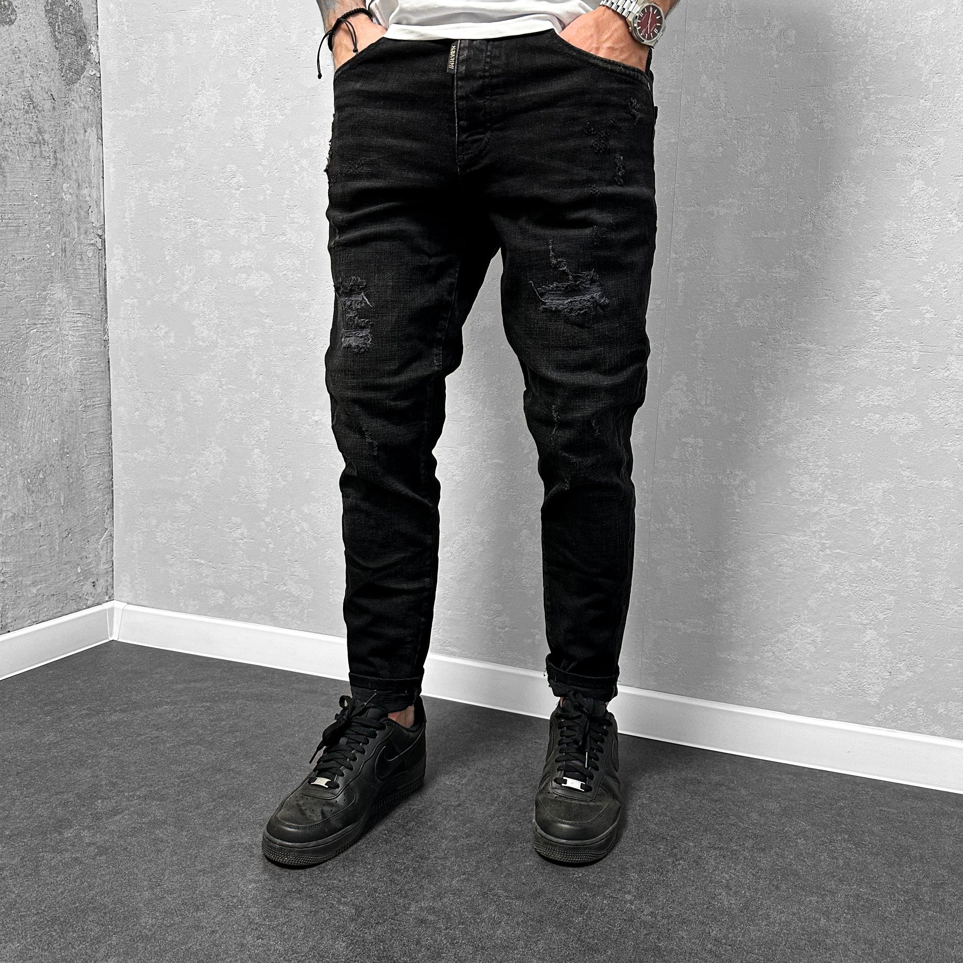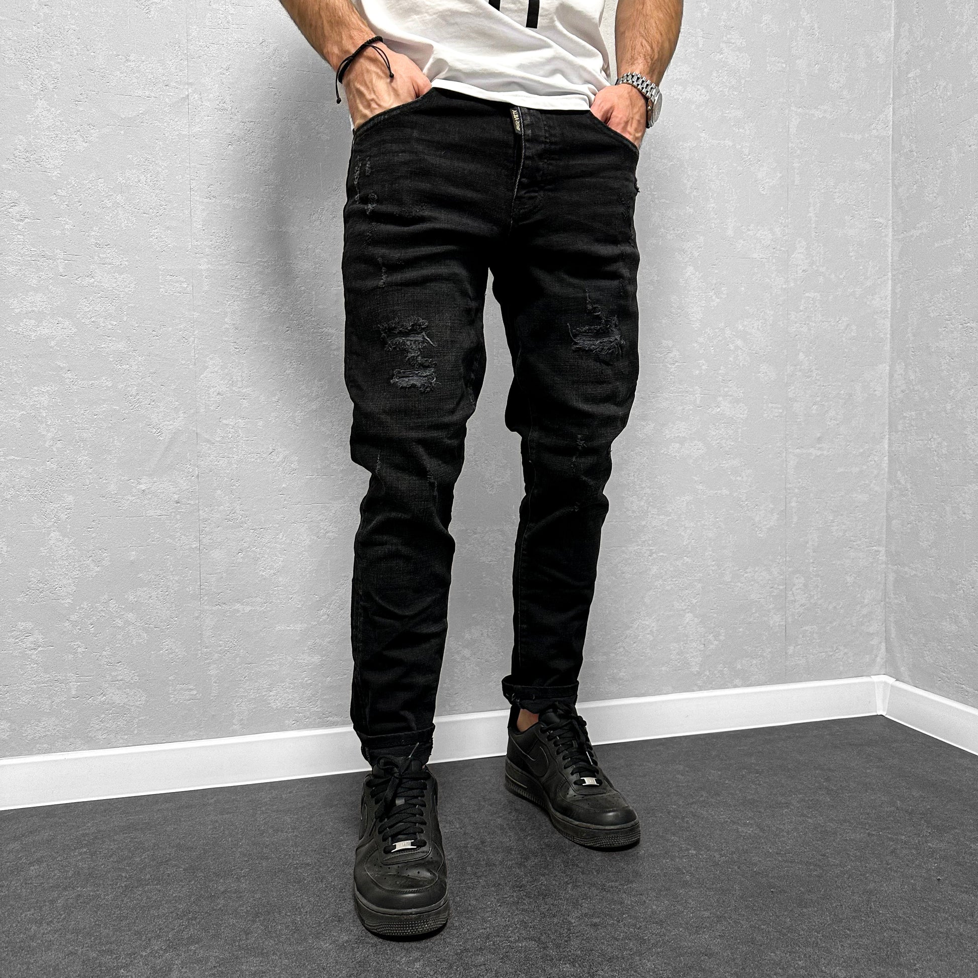 Мъжки накъсани дънки с пръски "Premiium"